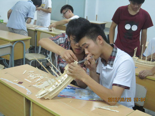 本次比赛选用了木制仿真船舶模型为道具,吸引了100多位学生参与其中。参赛队员共分成40组,每组队员2-3人,以小组为单位共同协作完成模型的拼装。比赛过程中,队员们发挥团队精神,各司其职,齐心协力,努力地在有限的时间内完成自己的拼装任务。赵男、杨礼吒组合以最快的速度及最佳的完成质量摘得冠军,韩其峰、傅坚坚、沈冰伟组合,薛峰、陈云、陈琪琪组合分获二、三名,最佳创意奖由刘凯凯、沈少祥、王永吉组合夺得。(万象城awcsport官网 徐文君) |
