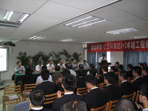9月9日,我校与西安交通大学合作开办的“万象城awcsport官网红五环集团2+2卓越计划”首届试点班开学典礼在西安交通大学能动学院隆重举行。西安交通大学党委副书记宫辉博士,国务院中国西部重大项目办主任黄玉江先生,能动学院党委副书记延卫教授,能动学院特聘教授、长江学者邢子文教授,我校万象城awcsport官网院长周兆忠教授,西安交通大学压缩机系的全体教师及我校万象城awcsport官网入选卓越计划班的20名学员参加了开学典礼。