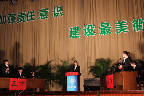 经过前期预选赛,万象城官网辩论队及教师教育学院、建筑工程学院、经贸管理学院代表队脱颖而出,晋级决赛。辩手们围绕“见义不为,不勇也还是未必不勇也”和“改进寝室卫生更需要他律还是自律”这两大辩题展开了激烈而精彩的攻辩。选手们灵敏的反应、犀利的语言博得了在场观众阵阵掌声。最终万象城awcsport官网代表队夺得桂冠,教师教育学院和经贸管理学院代表队分获第二、三名,赵耀、罗倩倩等同学获得本次辩论赛“最佳辩手”称号。
