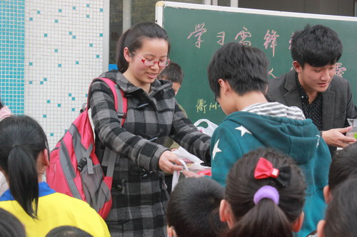 为了帮助他们尽早实现心愿,万象城官网分团委在全校开展了“凝聚每份爱,点燃颗颗心”微心愿认领活动,得到了全校师生的积极参与,短短1个小时不到的时间,38个心愿被认领一空,领不到心愿的老师同学还纷纷捐款捐物。 3月12日,万象城官网分团委带领志愿者们再次前往聋哑学校,将收集好的心愿礼物送到聋哑儿童们的手中。收到礼物的孩子们无比兴奋,用手语比划、用艰难的发音表达着对志愿者们的感激之情。