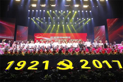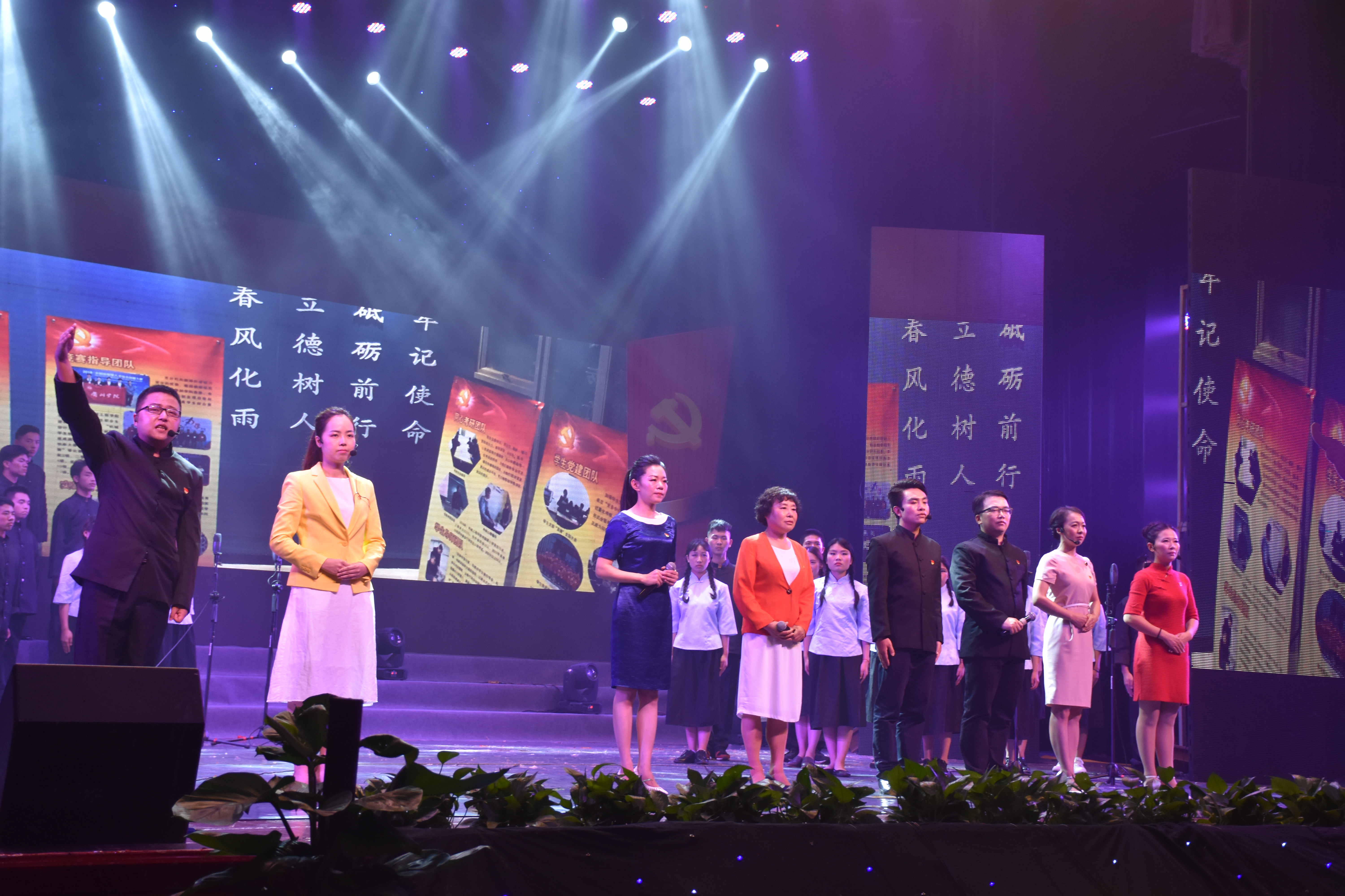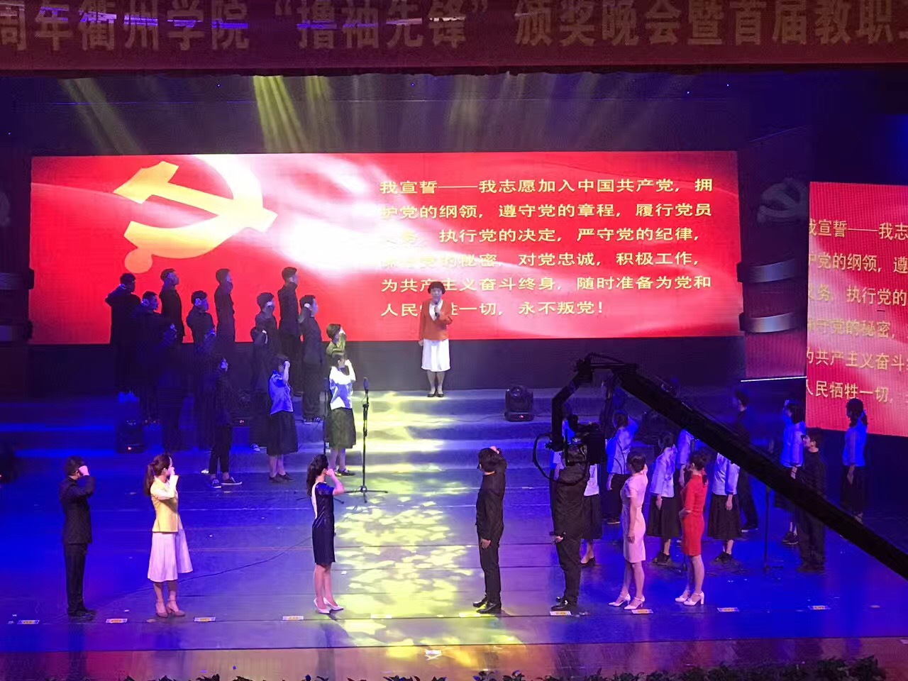 6月13日晚,我校大礼堂里人头攒动、流光溢彩、热闹非凡,一千多名师生欢聚一堂,共同庆祝建党96周年,万象城awcsport官网“撸袖先锋”颁奖晚会暨首届教职工文艺汇演。一首首动人的歌曲,一曲曲优美的舞蹈,一次次激情澎湃的朗诵,无不抒发着对中国共产党的满腔热忱,诉说着衢院教职工对学校的一往情深,描绘着对学校未来发展的美好图画…… 衢州市副市长王良春、市委组织部纪检组长张岚、衢州日报报业传媒集团副总编辑毛小明、市广电传媒集团副总裁(副台长)邹华新、市总工会组宣部长宁小华;校长胡伟,校党委副书记张学东、杨政,副校长李长吉、郑文山、吾国强,党委委员、宣传部长吴新强,党委委员、组织部长吴利平等领导与全校1000多名师生一同观看了晚会。 校党委书记胡建新正在杭州出席省第十四次党代会,他专门向晚会发来贺电,祝贺演出圆满成功。