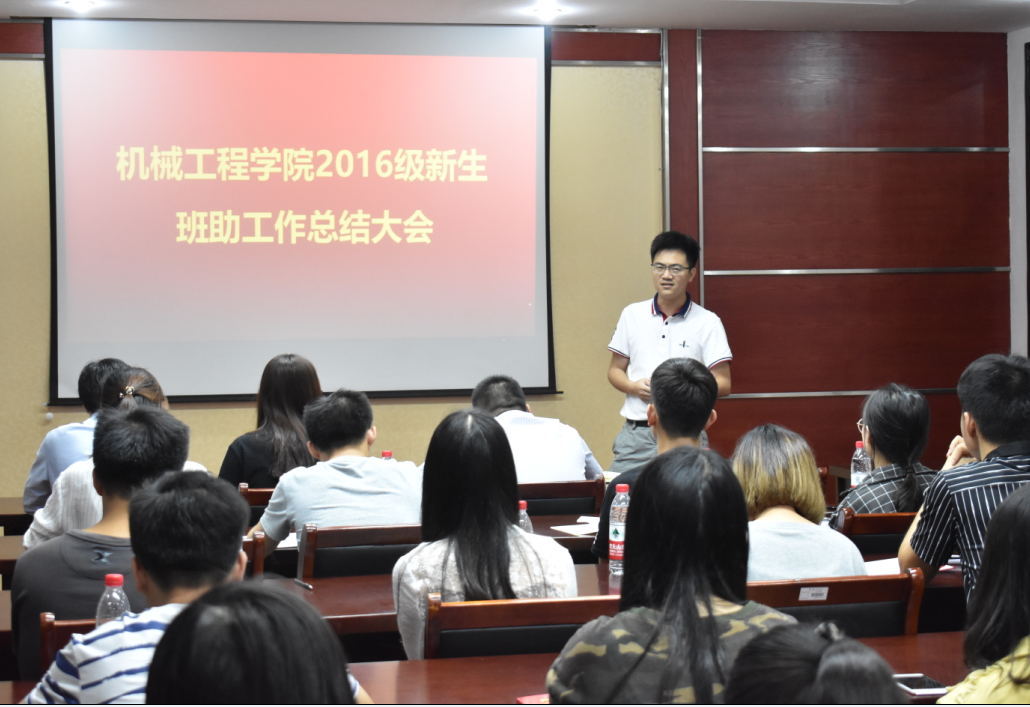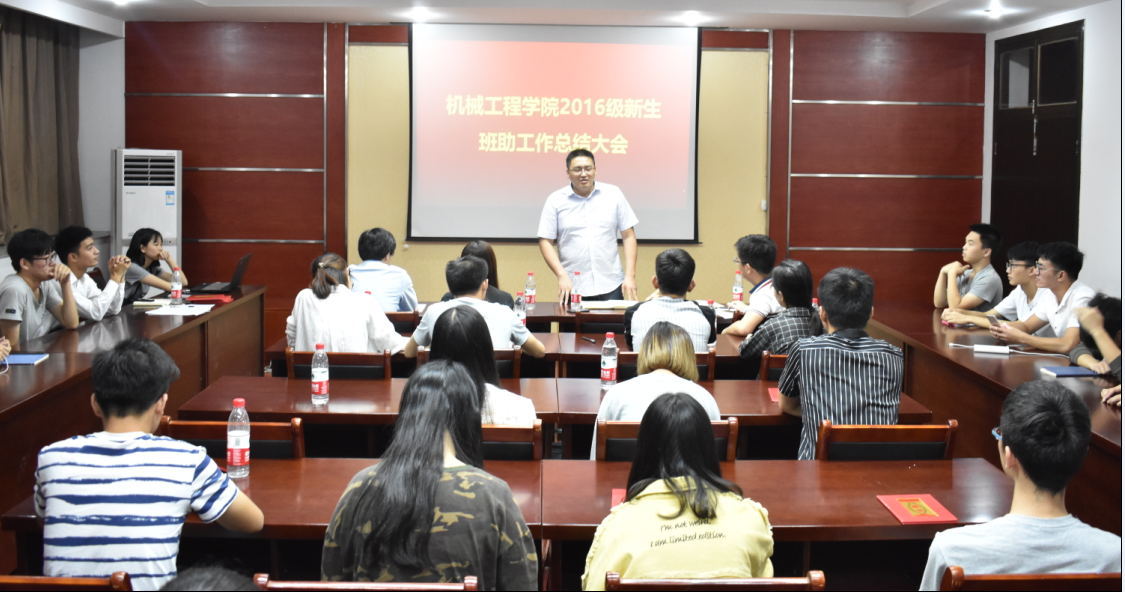 最后,马坚老师作了总结讲话。他指出:班助应当从自身出发,努力学习,树立一个良好的榜样,以积极向上的心态为新生提供一个导向作用;班助要秉承并且弘扬机械“家”文化,让新生感受家的温暖,从而迅速融入机械学院大家庭中来;希望17级的班助继续扮演好“引路人”角色,用自己的亲身经历去缩短新生的适应期。