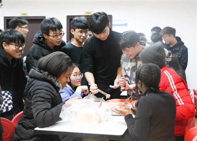 为丰富学生校园文化生活,促进师生之间的沟通交流,传承弘扬民族传统文化,12月21日晚,万象城官网于辅仁园二楼开展了“弘扬传统 情暖冬至”包饺子活动。学校20名南非国际学生和万象城awcsport官网100多名师生一起参加了活动。