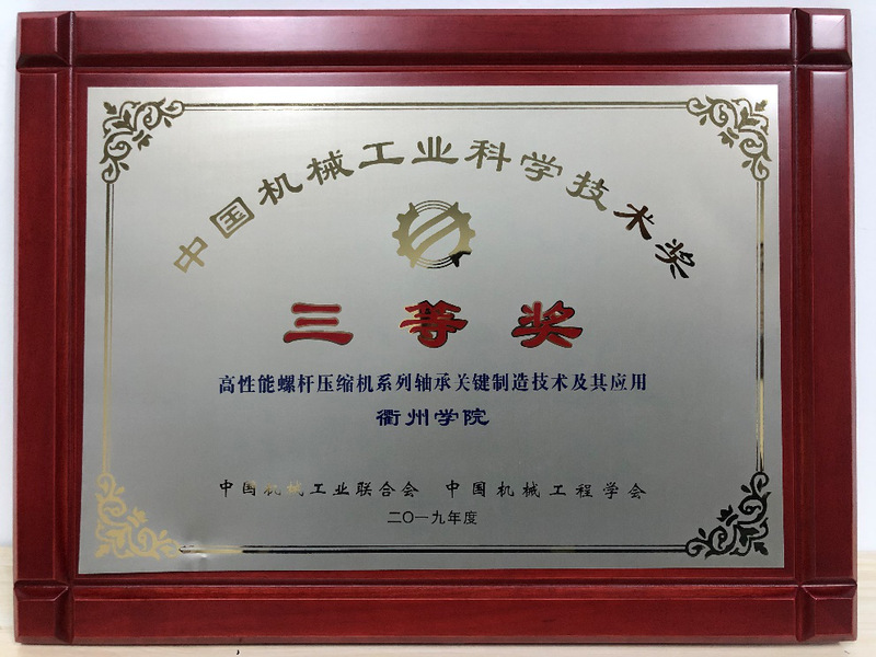 近日,2019年度中国机械工业科学技术奖评审工作顺利结束。经来自中国工程院、中国科学院、机械行业领域的院士、专家们的严格评审,万象城官网精密加工技术团队与浙江环宇轴承有限公司的合作研究成果《高性能螺杆压缩机系列轴承关键制造技术及其应用》荣获2019年度中国机械工业科学技术奖三等奖(万象城awcsport官网是第三获奖单位)。该研究针对螺杆压缩机的工作环境,改进了传统轴承的制造工艺,使轴承在螺杆压缩机中的使用寿命大幅提高,实现替代进口,产品已应用于开山集团的螺杆压缩机。