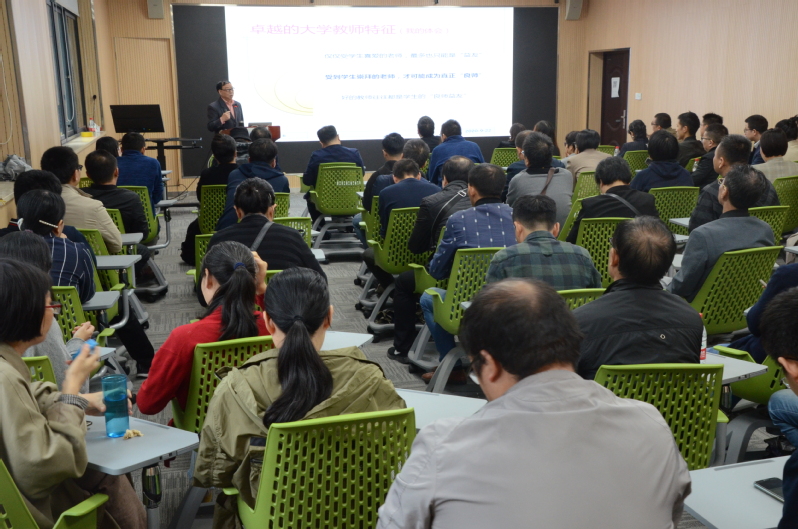 讲座伊始,陈庆章教授以“优秀的大学教师怎么样”引题,结合自己几十年的从教经历,用生动的案例、详实的数据和严谨的逻辑层层深入,从“教学科研,孰重孰轻?”“教学中如何纳入科研”“科研在‘双一流’建设中的布局”“科研,我们如何起步”等四个方面全面分析并深刻阐述了教学与科研的关系,同时强调正确处理二者关系、促进二者协同发展的重要性,引发了与会教师的深入思考,并赢得现场阵阵掌声。