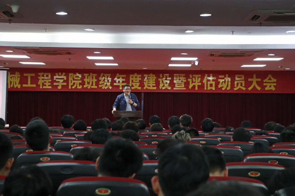 接着,栗明作了评估动员讲话,从本科教育教学审核评估是什么、怎么评、该了解什么、怎么做四个方面进行讲解,学院将开展文明课堂“五要”、文明寝室“五无”、校园礼仪“五讲”实践活动,引导同学们从身边的事情、具体的事情做起,增强同学们自我教育、自我管理、自我服务的主体意识。 19机电2班班长车鹏超同学作为优秀班级建设代表作交流发言,展示班级富有成效的特色做法。 辅导员琚宛珍介绍了党员对接学困生活动方案,希望学生党员、学生干部发挥先锋模范作用,同学们积极配合,共同营造良好的学习氛围。 最后,马坚老师作总结讲话,他向全院学生干部提了四点希望和要求:一要积极参与,广泛融入评估过程;二要加强学习,全面把握评估内涵;三是要严守纪律,深度营造评估氛围;四要有主人翁意识,为评估贡献力量。他指出审核评估是一件关系到学校和同学们的大事,直接影响学校的声誉、影响力以及学生就业,同学们要以积极建设的主人翁精神认真对待并配合学校和学院的相关工作。