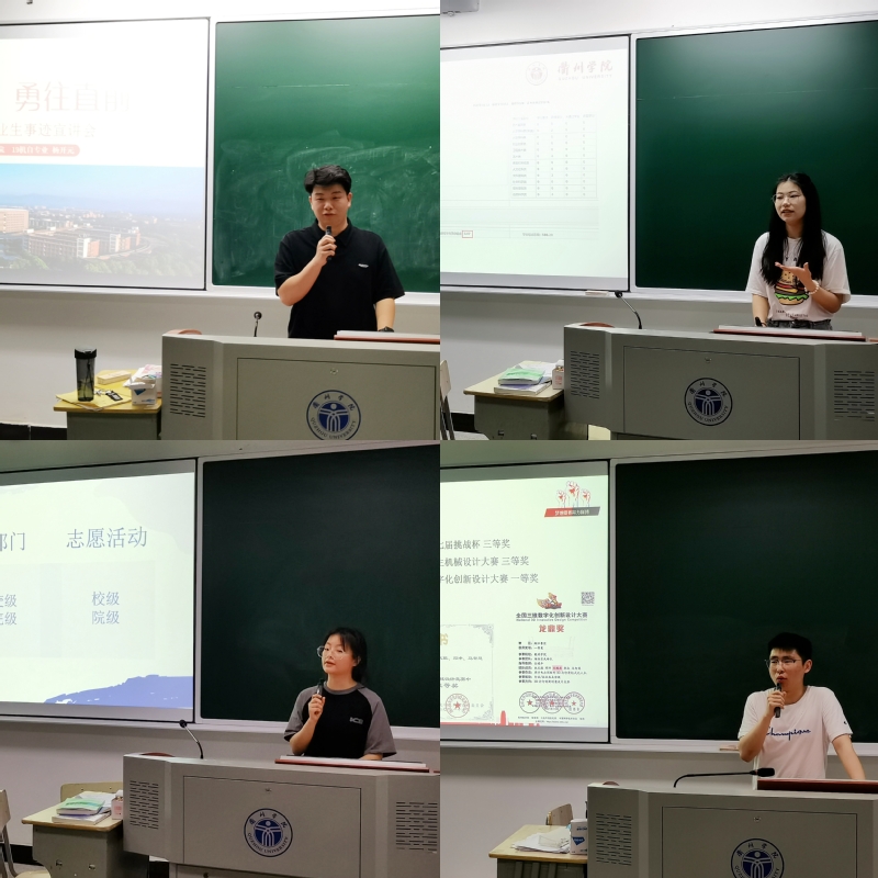 省级优秀毕业生先进事迹宣讲活动分专业四场同时进行,杨开元讲述了在校期间学习和科研经历,强调了时间管理的重要性,希望大家和时间成为朋友,合理规划好时间,制订好学习计划和目标;胡卓悦分享了如何提升个人学分绩点和积极参加校园活动的奋斗故事,号召大家做一个有理想、有本领、有担当的青年人;车鹏超希望同学们明确自己的目标,这样才有前行的动力,用拼搏成就梦想;胡紫嫣讲述了自己如何通过大学四年的努力丰富个人简历,鼓励同学们梦想没有有效期,一直在路上继续……每一个青春故事、每一段心路历程,都是宝贵经验的传递,为还处于迷茫阶段的低年级学生树立了榜样,指明了前进的方向。活动结束后,学长学姐们还对同学们提出的问题逐一进行了解答,宣讲活动在热烈的掌声中圆满结束。